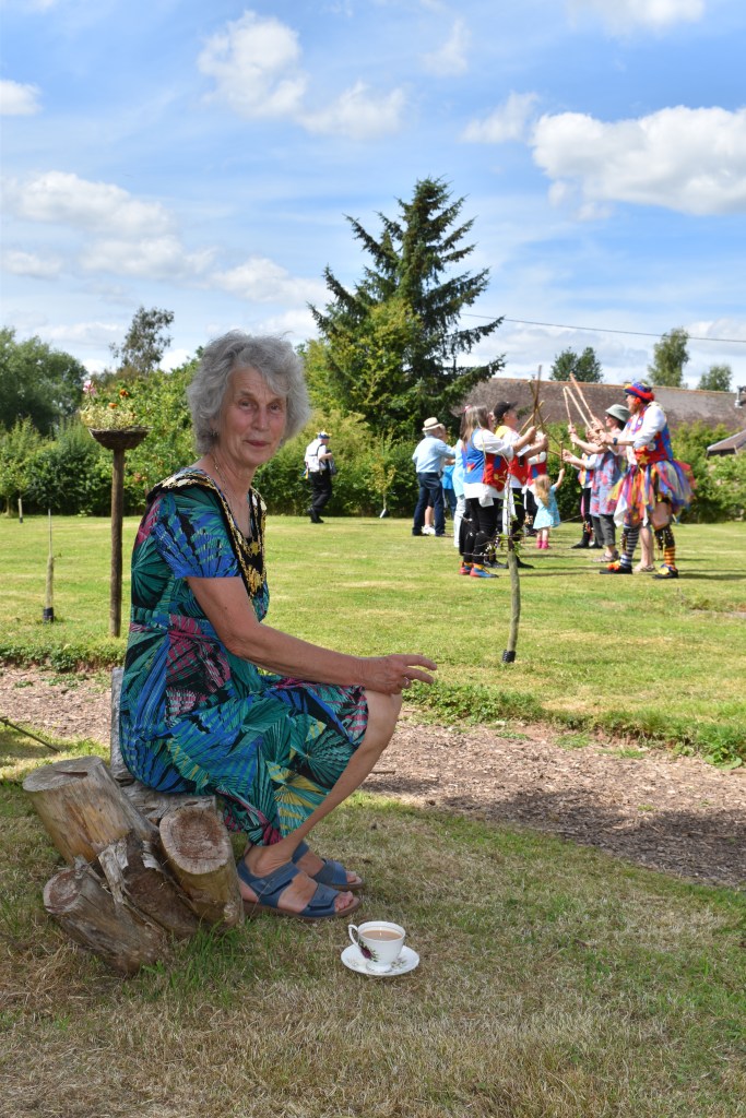 Alison, also one of the Lugg EmbroiderersTrish Marsh, Mayor of Leominster, enjoying a cup of teaA final dance by the Jenny Pipes with the audience invited to join in & the poets had a well earned rest!
