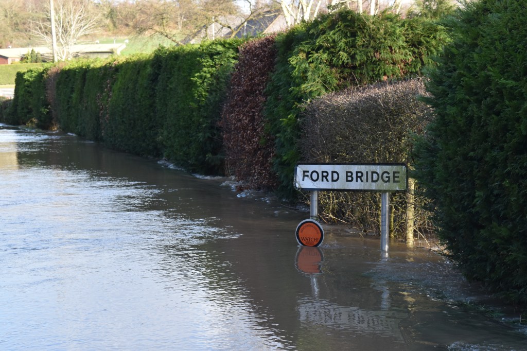 Looking towards Stoke Prior from the A49No driving through thisSoggy golf course at Ford BridgeKingsland BridgeLooking upstream at Kingsland BridgeLooking downstream at Kingsland Bridge where the bank had been altered in December 2020Snowdrops by the side of the Lugg at KingslandMortimer’s Cross upstream of the bridgeMortimer’s Cross downstream of the bridgeAccumulationsRiverside snowdrops at Mortimer’s CrossThe Weir at Mortimer’s CrossLooking upstream at the Weir
