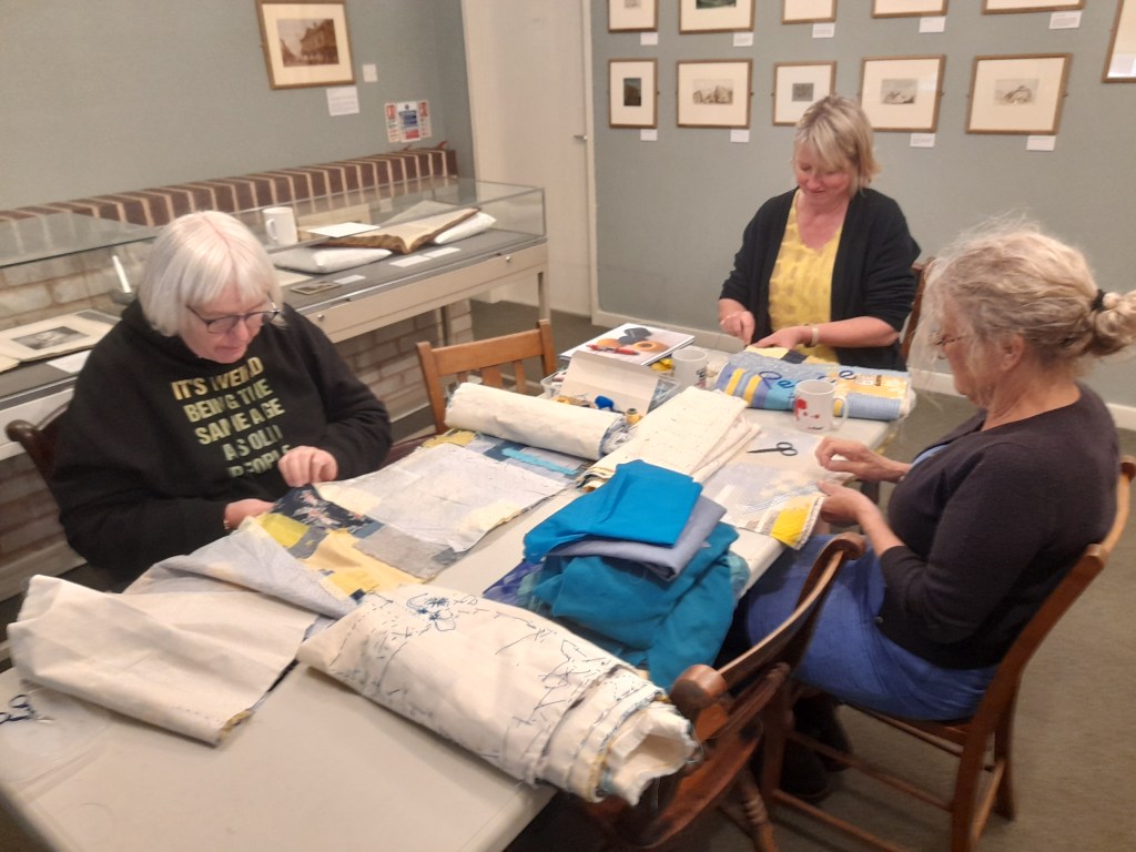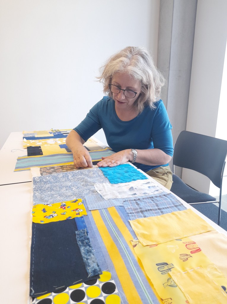 leominster Quilters invited me to talk about my research and upcoming participatory textile projects. There was not an overhead projector in the village hall so I wasn’t able to supplement my talk with visual interest. I decided to take the border along so that the Quilters could add to it if they wished whilst I talked. I learnt that Quilters usually work on machines at home on their own, perhaps listening to the radio or podcast, so stitching together and by hand was a different experience. I am grateful for the additions that they made and had some lovely conversations with individuals there. Thank you for asking me to come along.