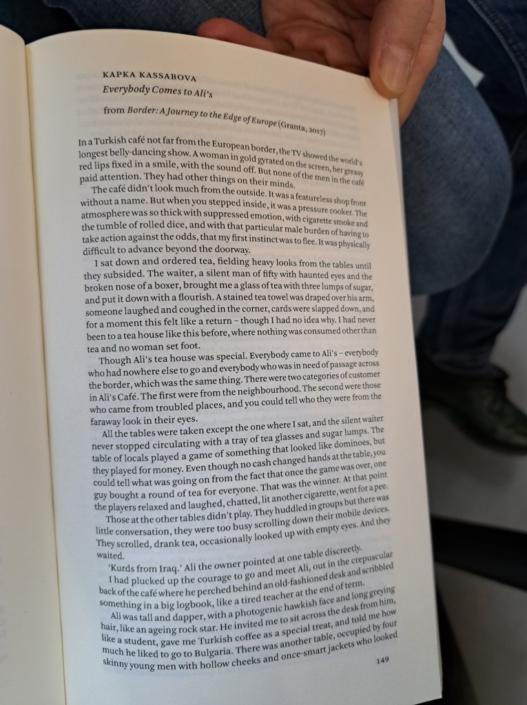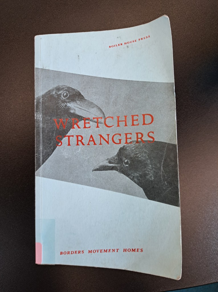 Another reading re-requested, is from ‘Utopia for Realists’; participants write down the reference. It imagines a world without borders and concludes we would all be much richer for it, including financially. In the group we hear more stories of personal struggles post covid; long covid is all around us but sources of help are proving patchy. We search the keyword ‘borders’ on the Poetry Library search engine, many results are found, enough to keep us going for a while. Richard chooses one book ‘Wretched strangers’ and finds it on the shelf; it is a gem.