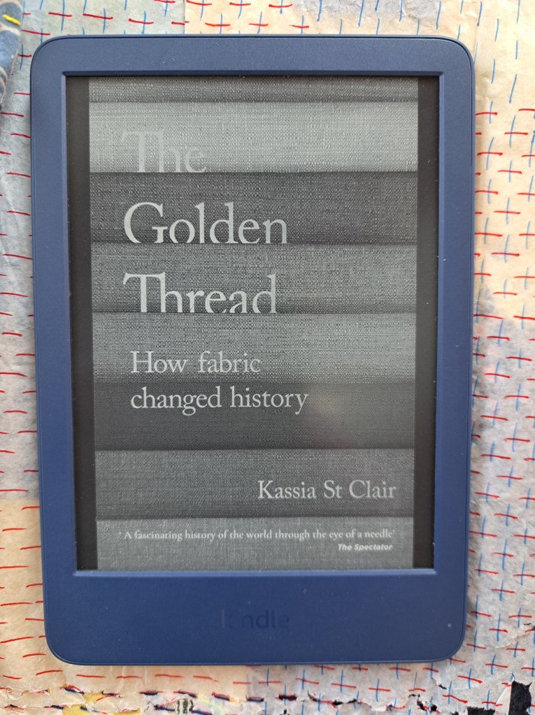 Rose and Rachael from the university marketing team pop by and take a moment to stitch on the border. Paul, a colleague who started his history research phd in my cohort and who I haven’t seen for ages stops by and promises to come next week. Richard and a friend drop in at the end of the session and we make plans for the readings the following week. Richard is wearing jeans that Libby has repaired with Sashiko stitching. His friend is off to the cricket tomorrow and the conversation turns to the health service. They depart for a meal, I head for the 5.30 pm train, arriving home in Herefordshire at 2.07 a.m! There was a broken down freight train on the track at Ludlow, but something is also badly amiss with the rail service’s communication skills. Stoicism is the attitude of most travellers and we are too tired to fuss. I can’t even speak about this journey home until Saturday.